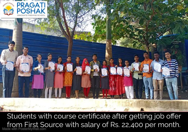Students proudly receive their course certificates after securing job offers from First Source, marking a confident step into professional careers with competitive salaries.